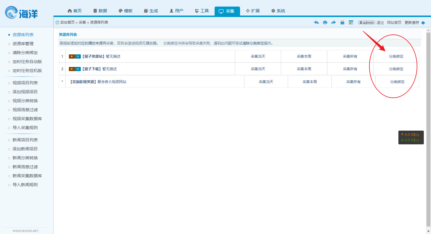 #每日采集链接获取方法:选择"后台-采集-资源库列表",复制资源站右边的"采集每天"的链接地址,去掉?前面的内容。
