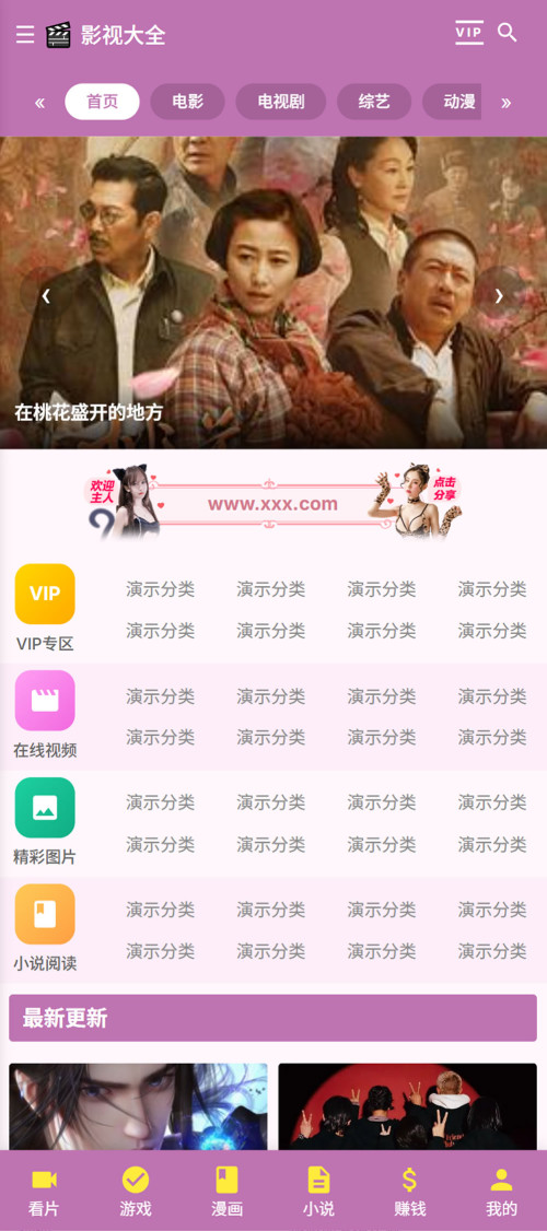 APP打包优化适配,自适应粉色模板,小体积秒加载,模拟app动画效果,适合X