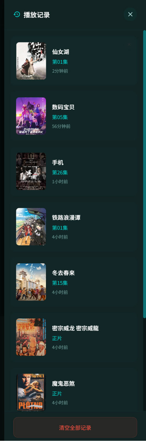 加强版播放记录, 支持海报封面 观看集数 观看时间